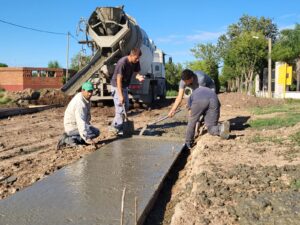 Por estas horas se trabaja en el hormigonado de la calle Almirante Brown hasta su intersección con el Bv.Larrea.