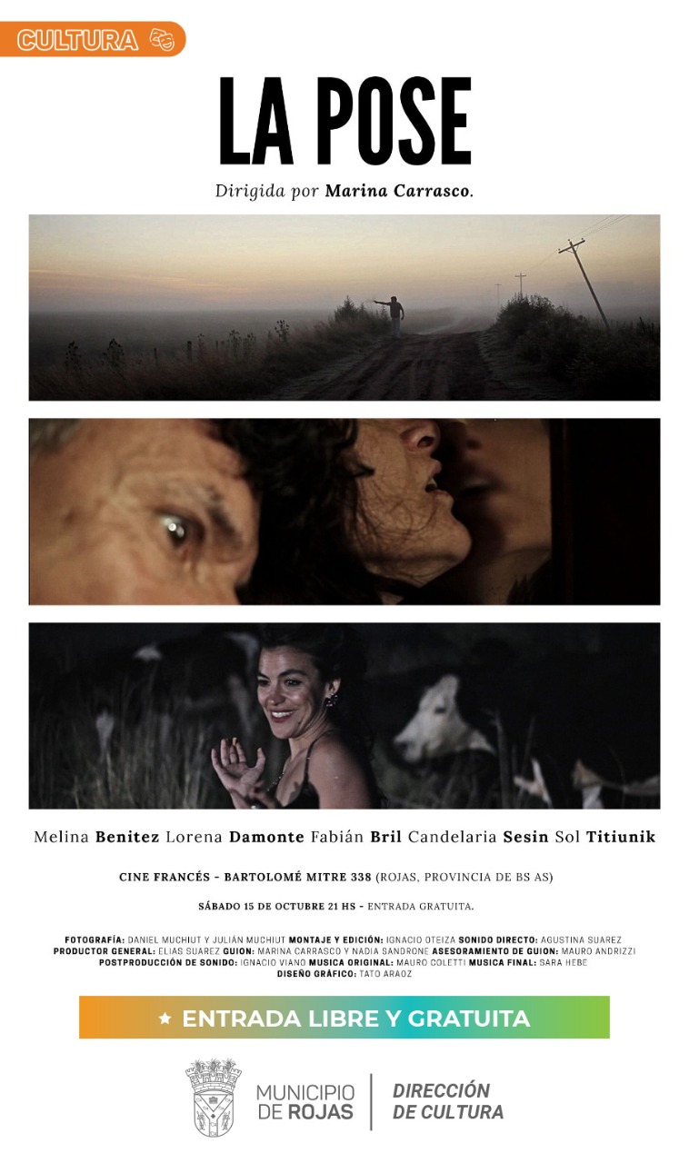 Agenda cultural en Rojas – Se proyectará la película «La Pose» de la rojense Marina Carrasco – El sábado 15/10 en el Cine Francés a las 21,00 horas – Entrada libre y gratuita – Organiza la Dirección Municipal de Cultura –