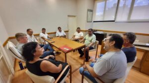 Representantes de UPCN, el Sindicato de Empleados Municipales y el Sindicato de Trabajadores Municipales (Macario Navarro, Marta Fiorabanti, Sergio Giles, Enrique Alvarado, Fabián Allevato) fueron recibidos por funcionarios del ejecutivo municipal en una mesa de negociación que continuará abierta al diálogo de manera permanente teniendo presente la difícil situación que atraviesa el país.
