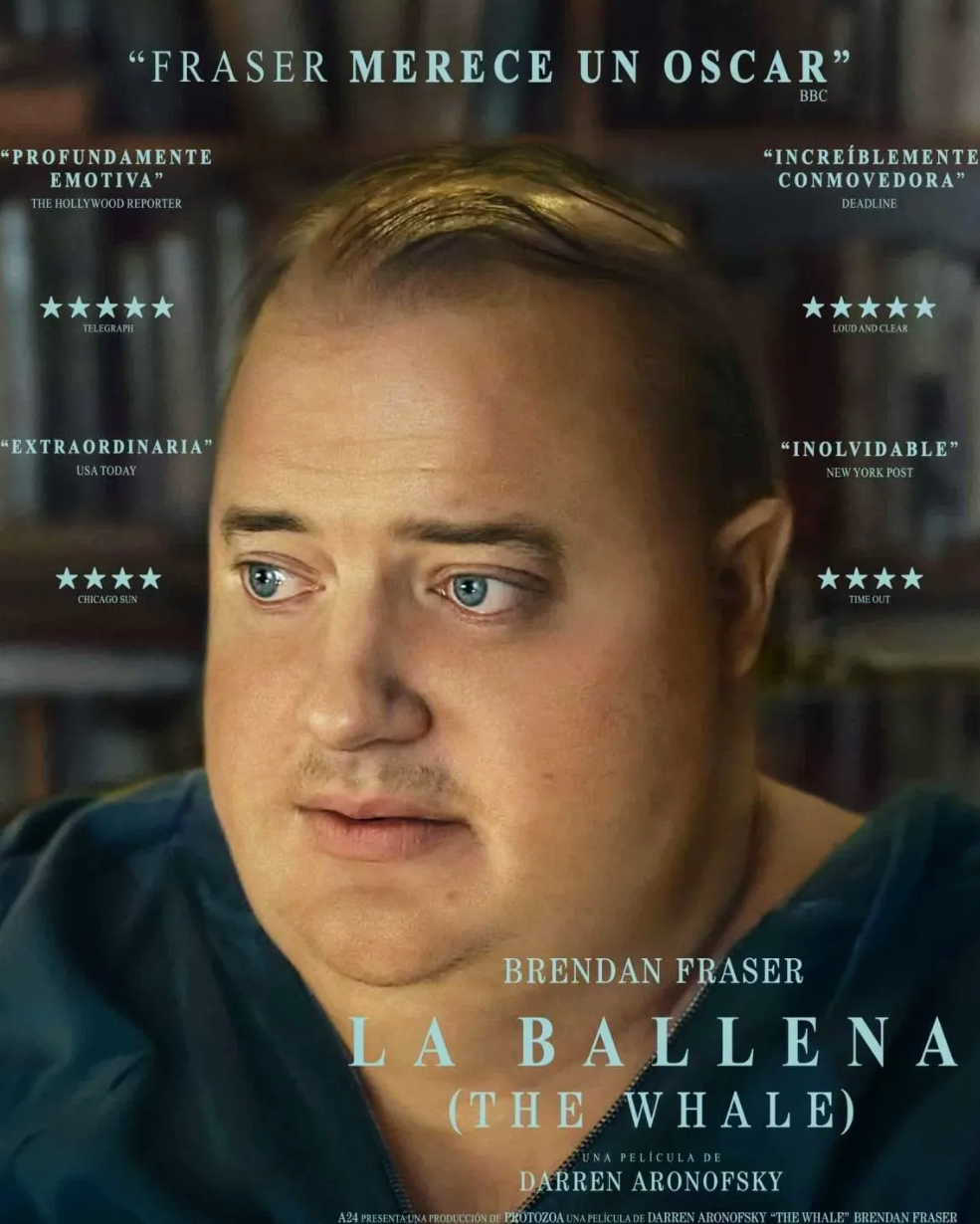 📽️🍿20,00 horas «La Ballena» con Brendan Fraser, ganador del Óscar al mejor actor – Fraser interpreta a un solitario profesor de inglés que tiene obesidad mórbida y vive recluido, mientras intenta reconectar con su hija adolescente para tener una última oportunidad de redención –