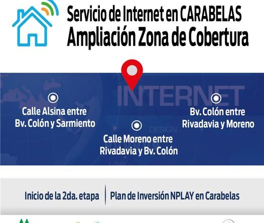 “NPlay Clyfer amplió su zona de cobertura de Internet al sector ubicado entre las calles Alsina, Bv. Colón, Sarmiento y Moreno. El alcance de esta nueva inversión se debe a la puesta en marcha de la segunda etapa del Plan de Inversiones NPLAY en Carabelas “Red de Fibra óptica y equipamientos” para el servicio de Internet.