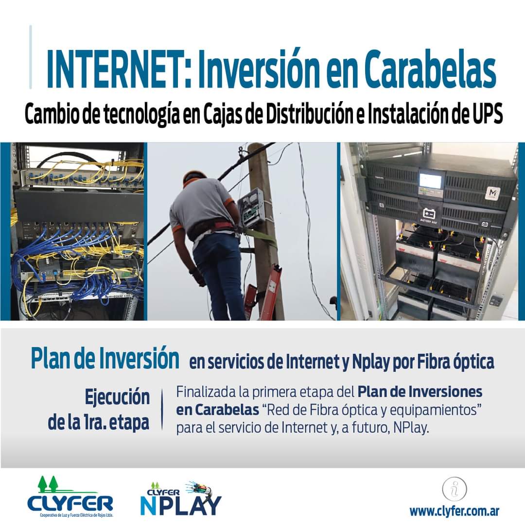 La Clyfer informa a sus asociados, la finalización de la primera etapa del Plan de Inversiones en Carabelas “Red de Fibra óptica y equipamientos” para el servicio de Internet y, a futuro, la llegada de NPlay.