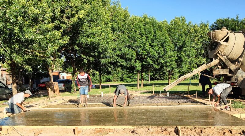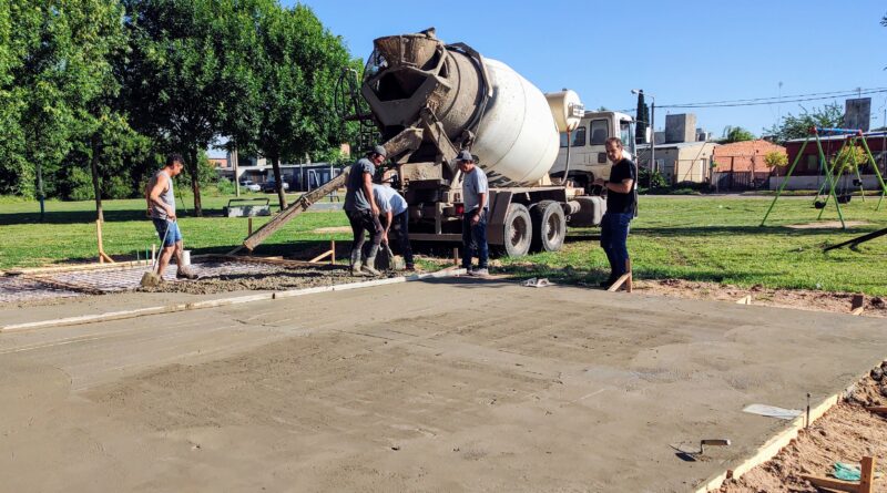 En estos días se va completando el hormigonado de los cimientos, para luego avanzar con la vereda perimetral y dejar las bases preparadas para la instalación de la estructura edilicia que contendrá un espacio para el salón de usos múltiples, office y sanitarios.