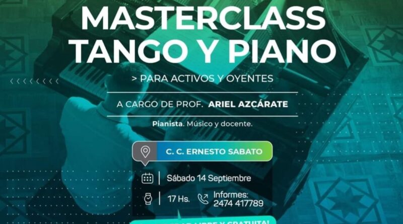🎹A partir de las 17 horas se brindará una masterclass de TANGO-PIANO – La misma está destinada a instrumentistas y compositores – Podrán participar alumnos activos y oyentes – Los interesados deberán pasar por el conservatorio a inscribirse y/o comunicarse al TE 2474-417789 –