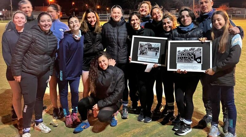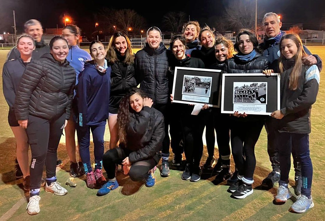 En la tarde noche de este último lunes 26/8, Dia del Hockey, las apreciadas Coca Jué y Cecilia Blázquez visitaron el entrenamiento del plantel albilceltes haciendo entrega de dos imágenes enmarcadas de la histórica inauguración de su cancha de césped sintético el 7/3/2020 –
