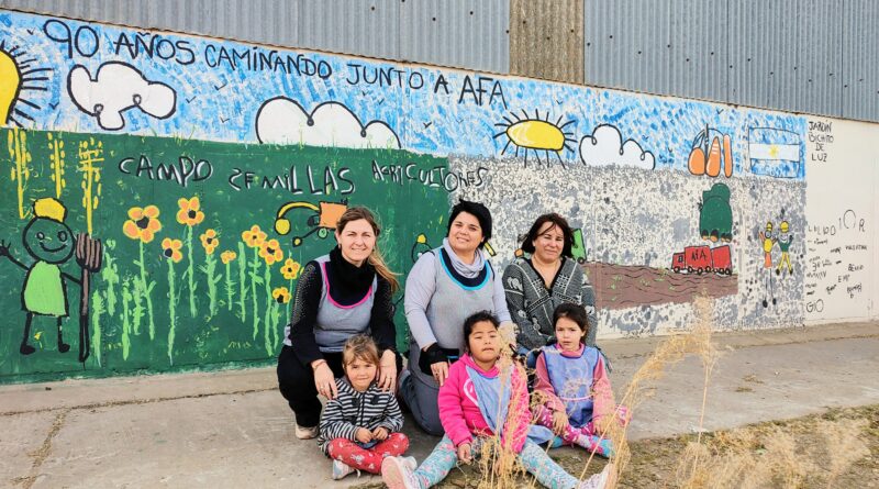 El Jardín de Infantes «Bichito de Luz» avanza con la creación del mural en el Centro Primario Rojas de AFA –