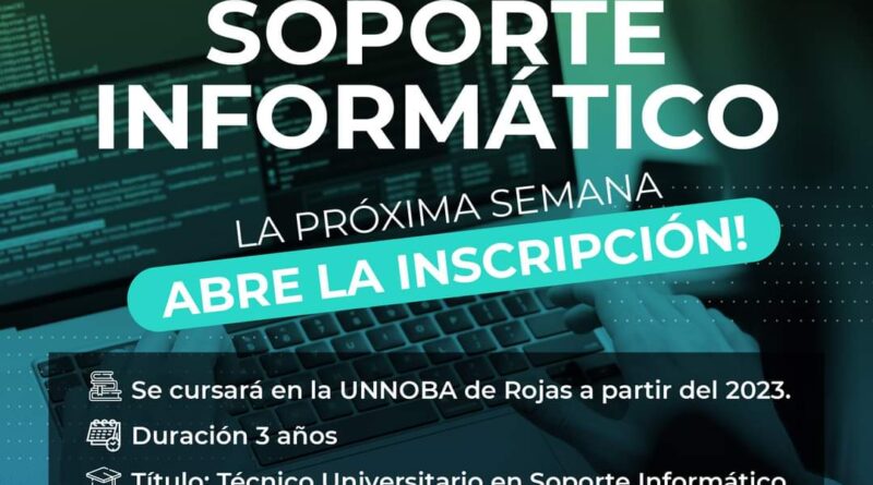 El Municipio de Rojas informa la apertura de la inscripción a la Tecnicatura en Soporte Informático –