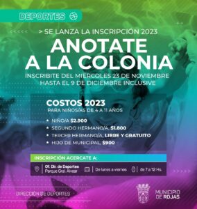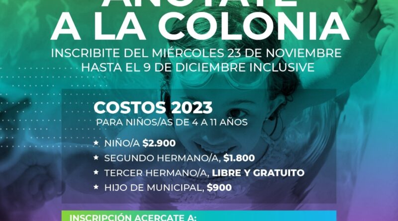 El miércoles 23 de noviembre comenzó la inscripción para la Colonia Municipal de Vacaciones 2023 que se extenderá hasta el 9 de diciembre inclusive, para niñas/os entre 4 y 11 años.