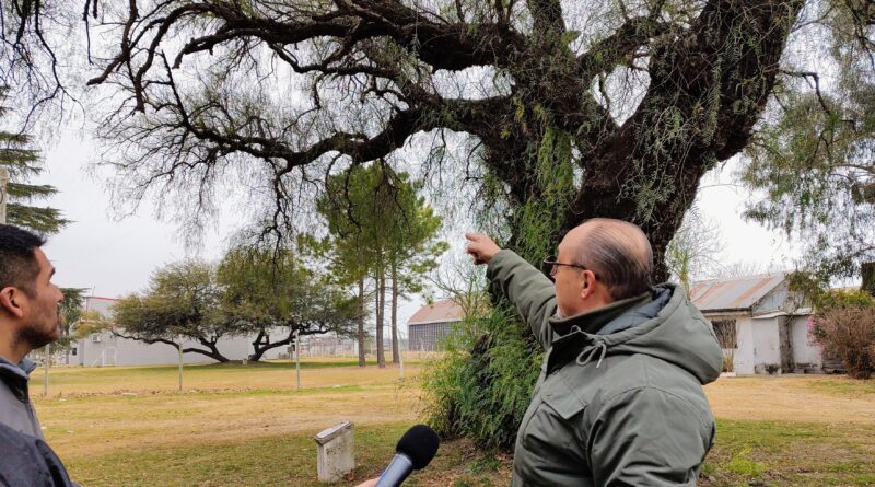 El reconocido Ingeniero, Gustavo André, comenzó la aplicación de un tratamiento a uno de los árboles históricos de Rojas –