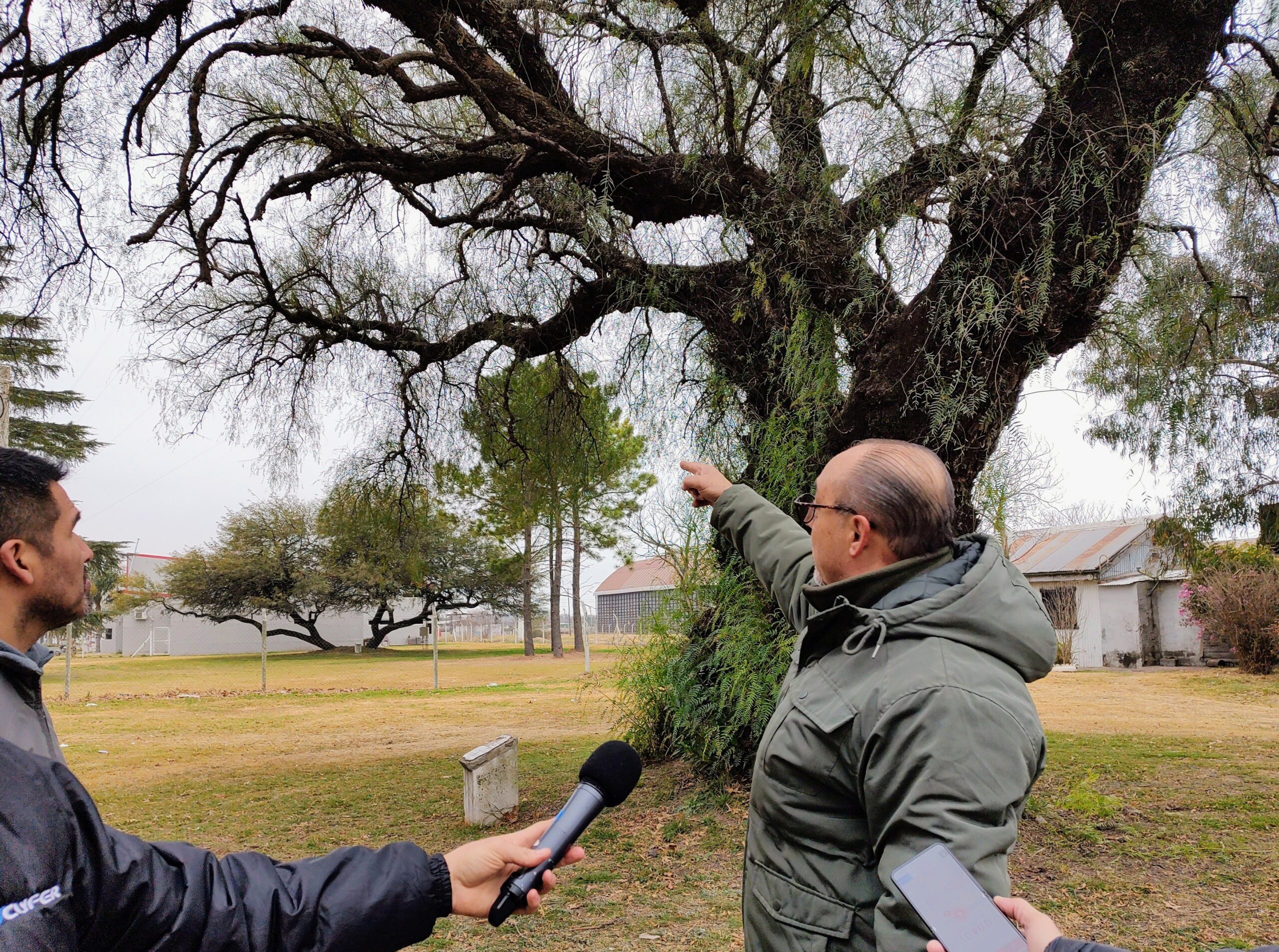 Este último viernes 15/07 antes de comenzar el tratamiento al Aguaribay, se reunió con el intendente municipal, Román Bouvier y el secretario de coordinación y gobierno, Nicolás Scardino –