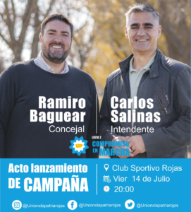 Elecciones PASO 2023 en Rojas – Las listas del espacio «Unión por la Patria» realizan sus actos el viernes 14/7 a las 20 horas –