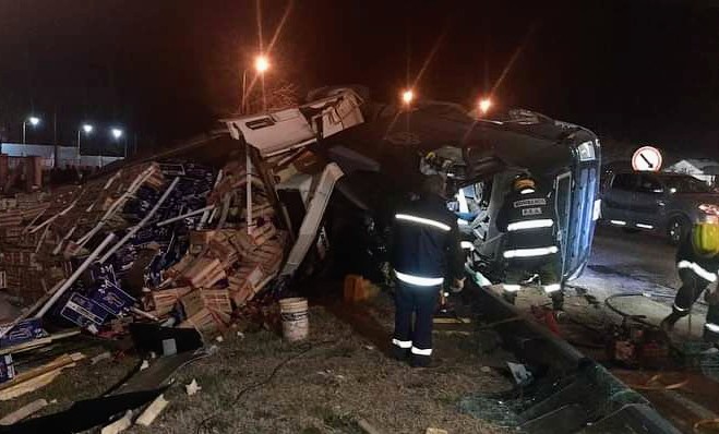 En Junín – Trágico vuelco de un camión en la Rotonda de la Ruta 188 y calle Alberdi – Falleció el chófer, oriundo de Chubut – El siniestro sucedió este sábado 27/08 alrededor de las 21,45 horas –