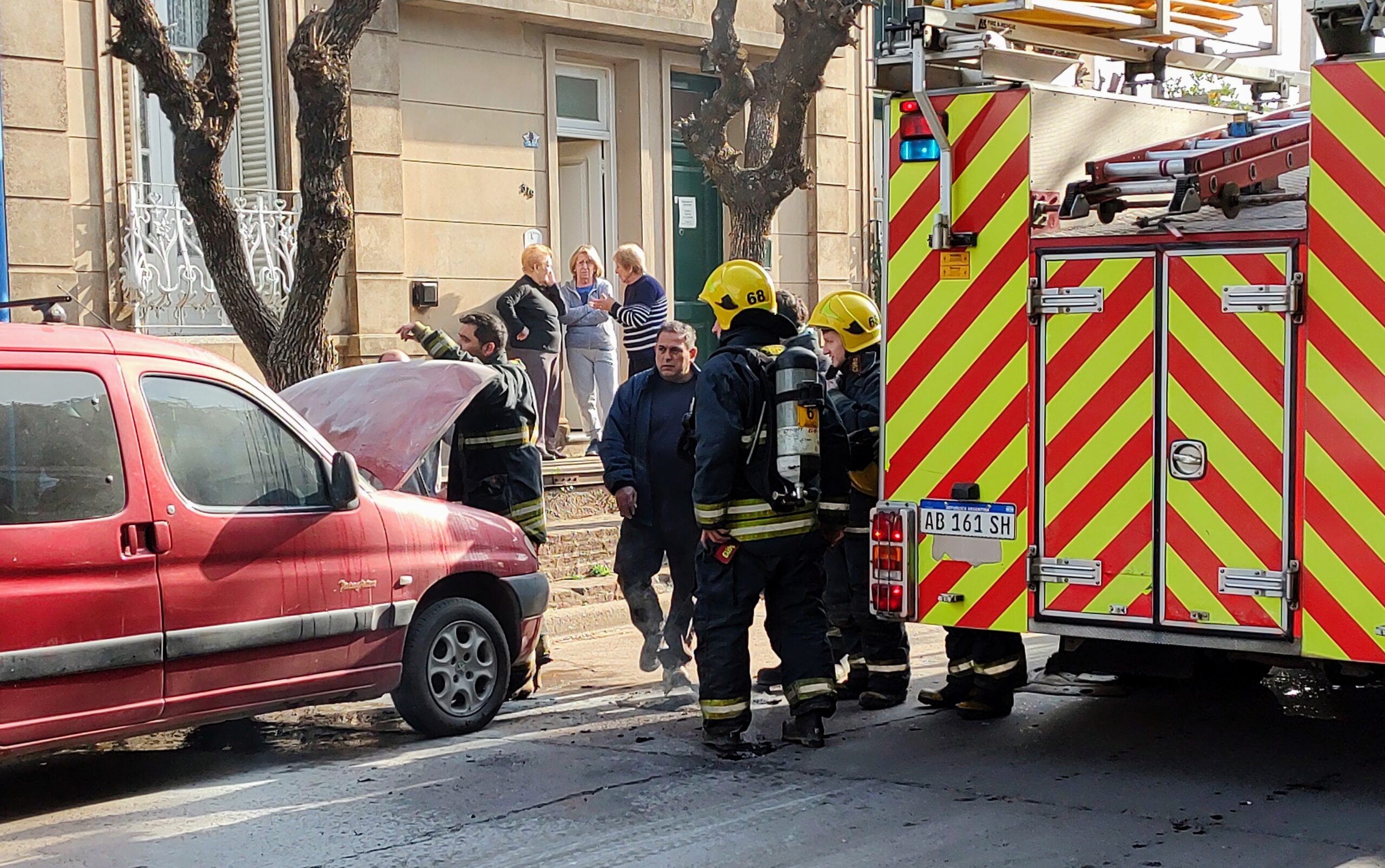 Incendio vehicular en calle Paso entre Lavalle y Avellaneda – Asistieron los Bomberos Voluntarios de Rojas –