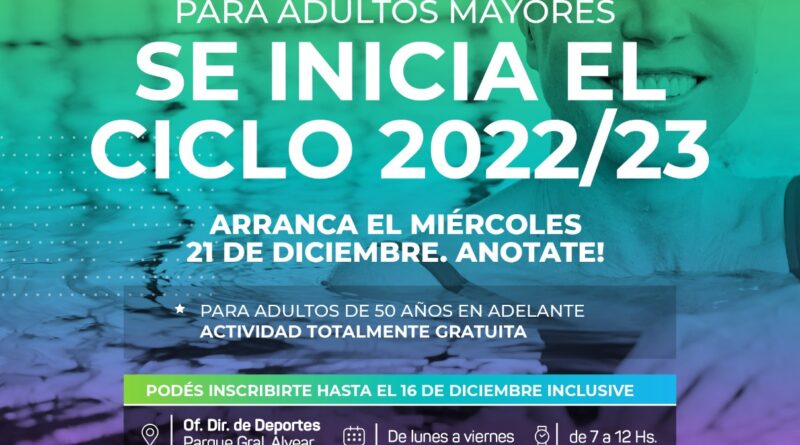 El próximo miércoles 21 de diciembre se iniciará el ciclo 2022/2023 de la Colonia de Vacaciones para Adultos Mayores a desarrollarse los lunes, miércoles y viernes de 17 a 20 horas en el Club de Pescadores.