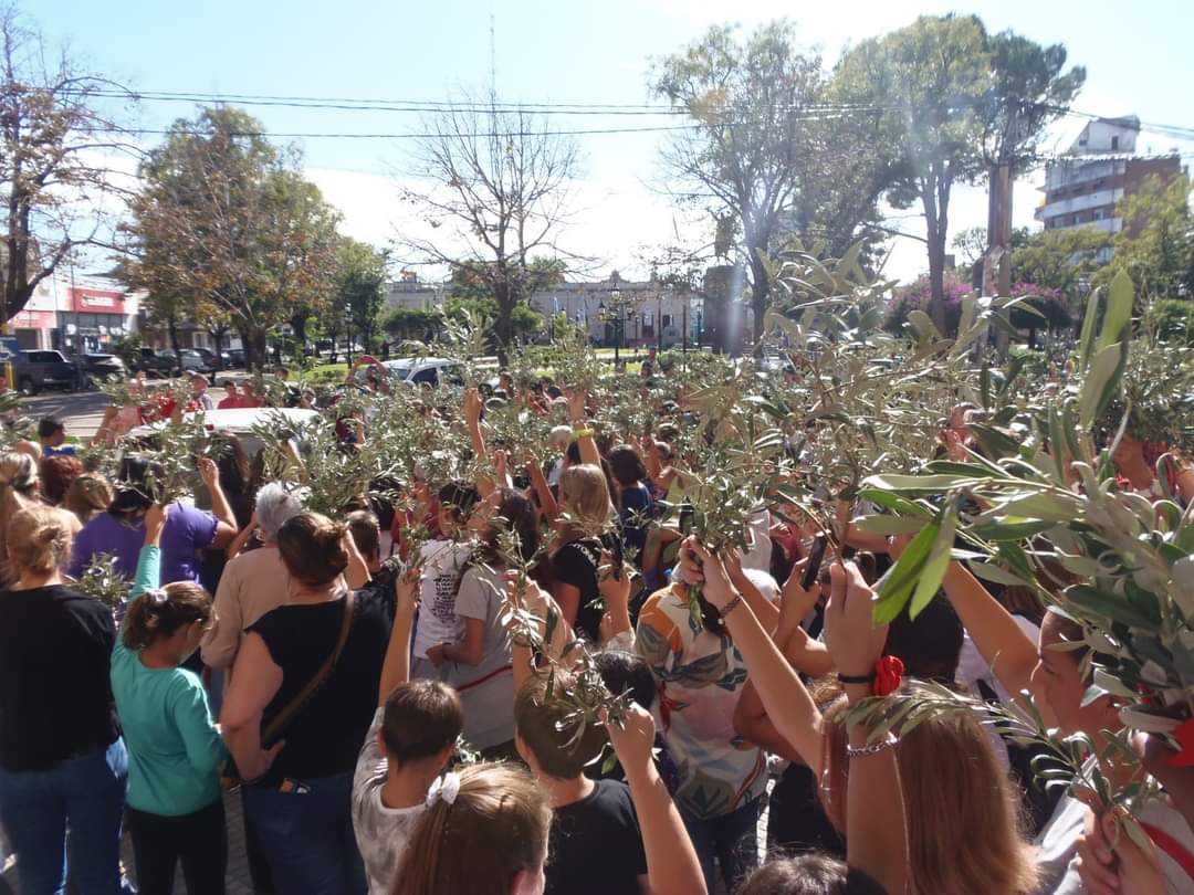 Este domingo 24/3 por la mañana (10 hs), la Parroquia local organizó una procesión que partió desde el Cristo (Tres de Febrero y Av.25 de Mayo) hacia la Iglesia, donde se celebró la Misa con la bendición de los ramos en un recinto que lució una bella ornamentación –