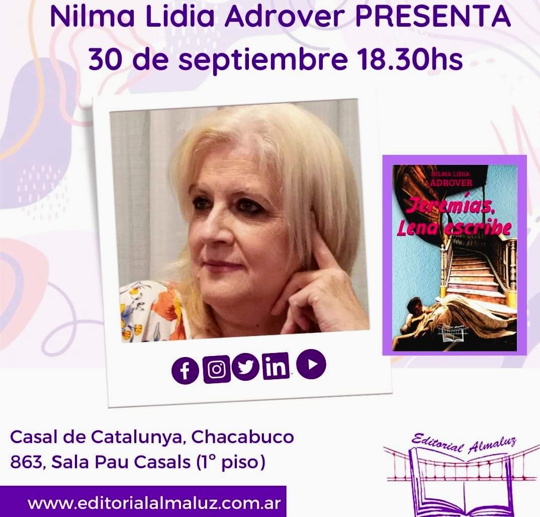 La reconocida escritora rojense, Nilma Lidia Adrover anuncia su nueva obra, la novela: «Jeremías, Lena escribe» –