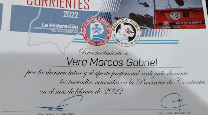 Los Bomberos Voluntarios de Rojas fueron reconocidos por su tarea en el combate de los incendios forestales en Corrientes –
