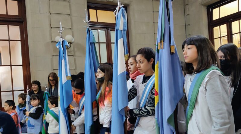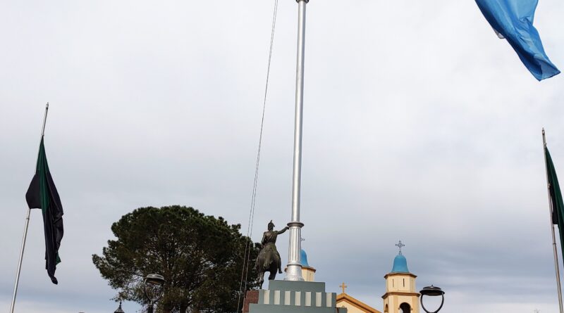 Se cumplió con el izamiento de la Bandera Nacional y el depósito de una ofrenda floral al pie del Monumento de la Plaza San Martín –