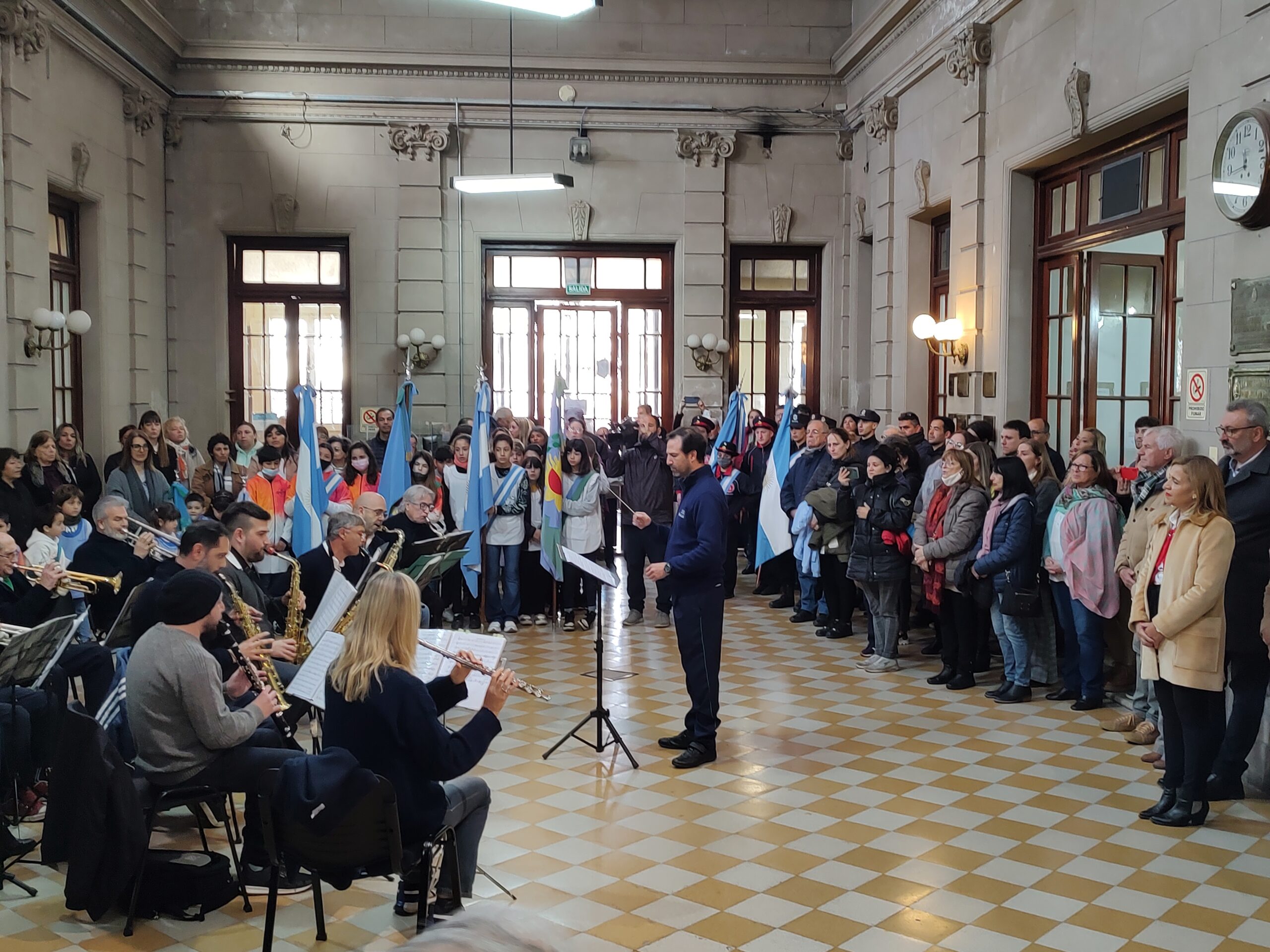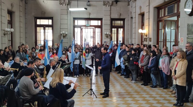 Se desarrolló este miércoles 17/08 en el Hall del edificio municipal (por cuestiones climáticas) con la participación de la Banda Municipal de Música de Pergamino que interpretó el Himno Nacional y temas alusivos a las gestas sanmartinianas –