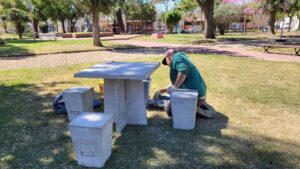 Desde el área municipal de Parques y Paseos se renovaron luminarias y mobiliario, se arreglaron juegos y veredas, se construyó una garita para el placero y se instaló la automatización del riego.