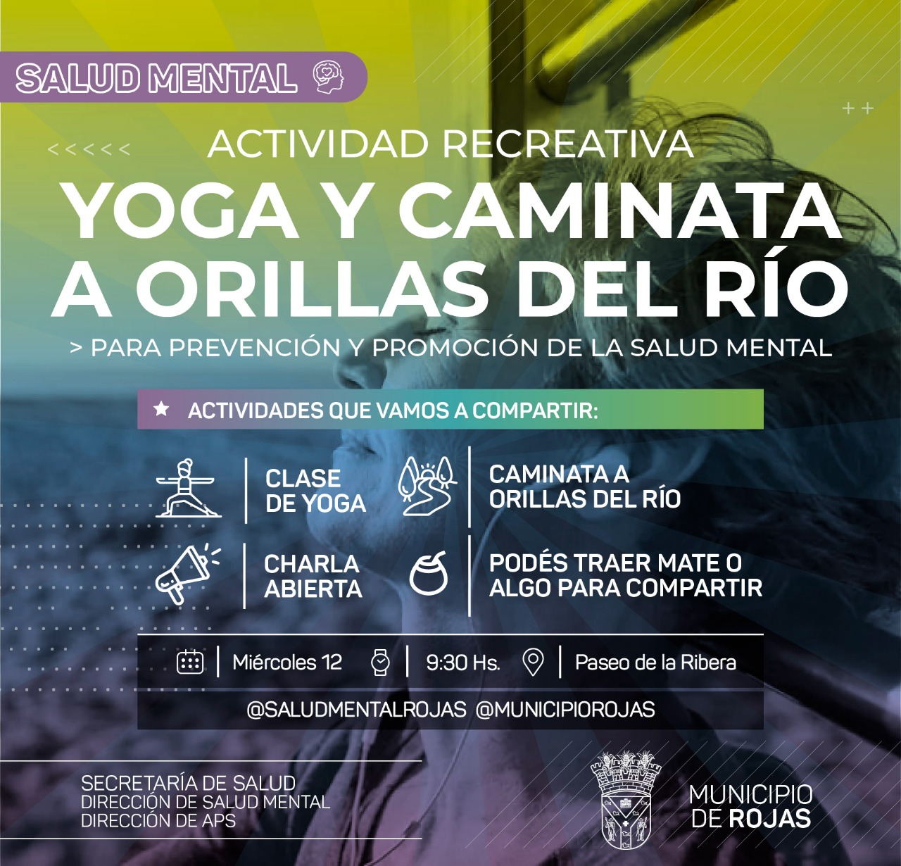 Mes de la Salud Mental – El Municipio de Rojas invita a participar de una clase de yoga y caminata a orillas del Río – Este miércoles 12/10 a las 09,30 horas en el Paseo de la Ribera –