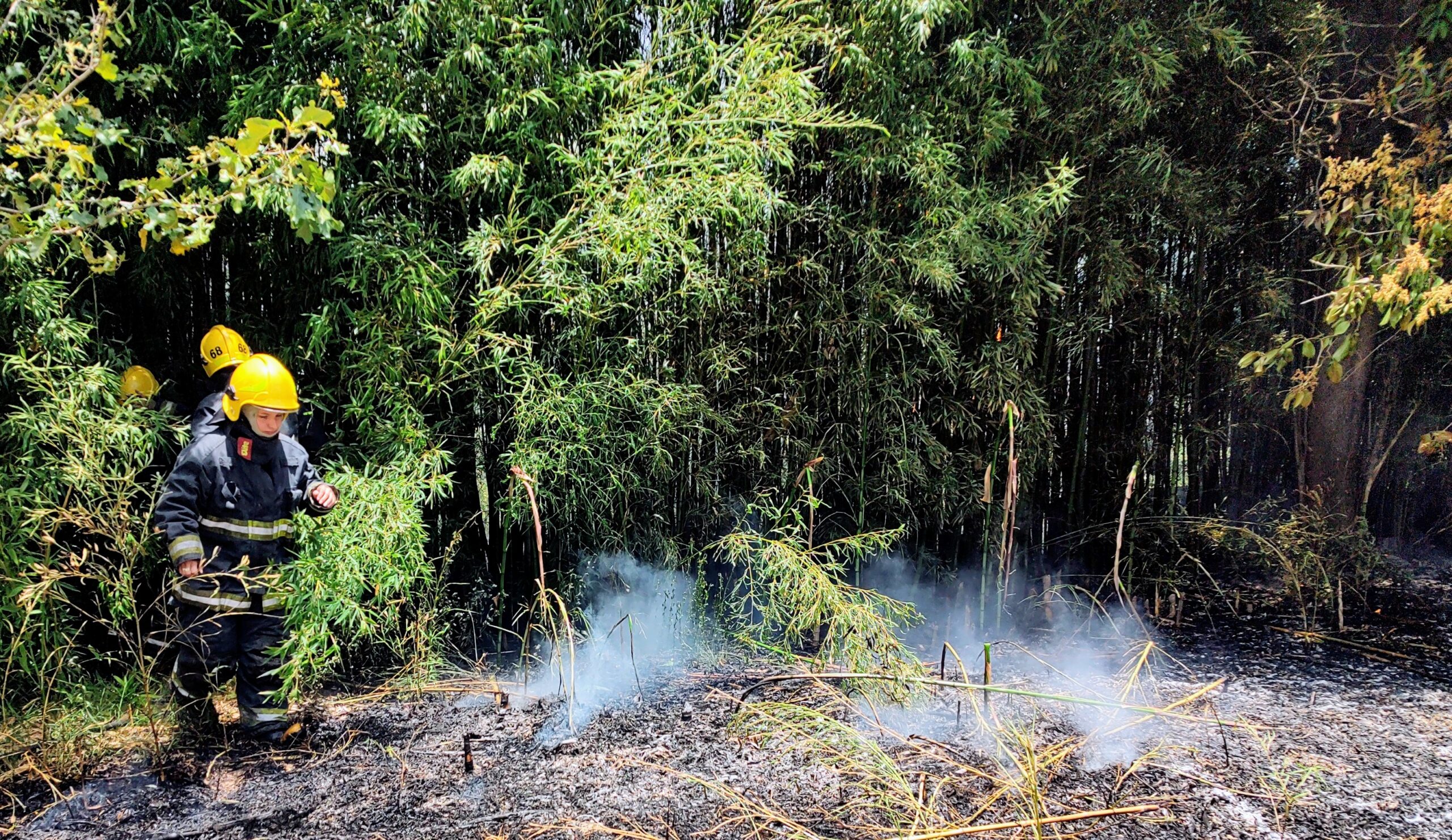 La alarma ingresó en el cuartel sobre las 12,57 horas activando al móvil 16 con su dotación completa que rápidamente se movilizaron al lugar, controlando el fuego qué, por causas a determinar, se presentaba en los fondos de la propiedad indicada en el título de la publicación, afectando unos cañaverales con riesgo de expandirse hacia un terreno contiguo –