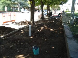 Comenzaron los trabajos sobre el sector que da a la Avenida 25 de Mayo, desde la intersección con Vélez Sarsfield hacia María Unzué de Alvear.