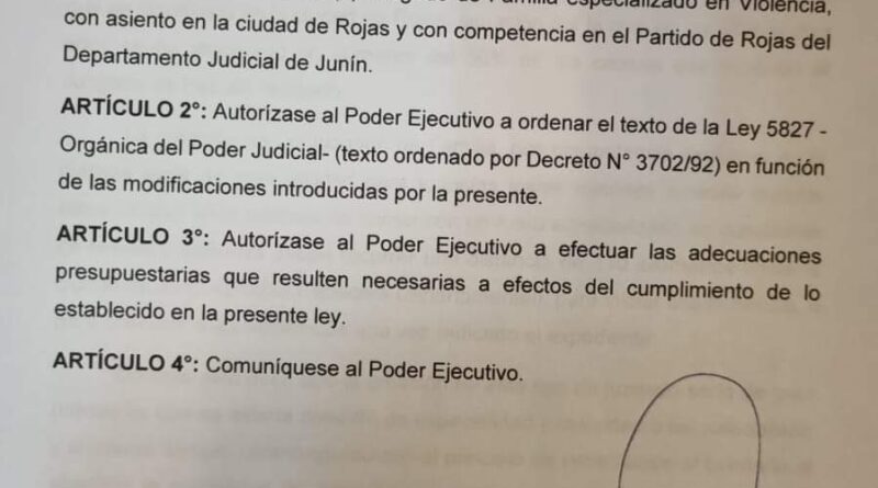 Proyecto de creación de un Juzgado de Familia en Rojas –
