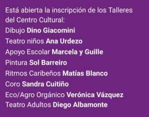 Rafael Obligado – Esta abierta la inscripción a los Talleres Municipales que se brindan en el Centro Cultural – Desde este lunes 13 al viernes 17/3 se pueden acercar a la Biblioteca para inscribirse –