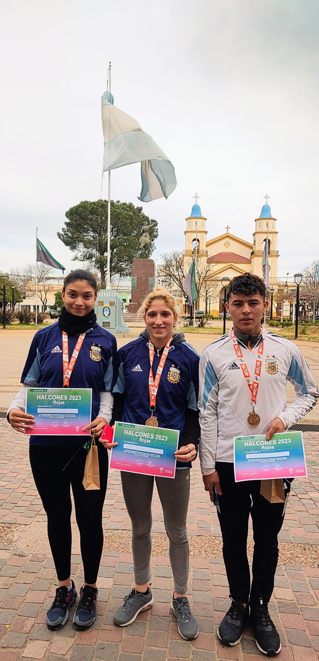 Rojas recibió a Mariana Sánchez, Sol Farías y Brandon Fernández, Campeones con el Seleccionado Argentino de Fútbol «Los Halcones» –