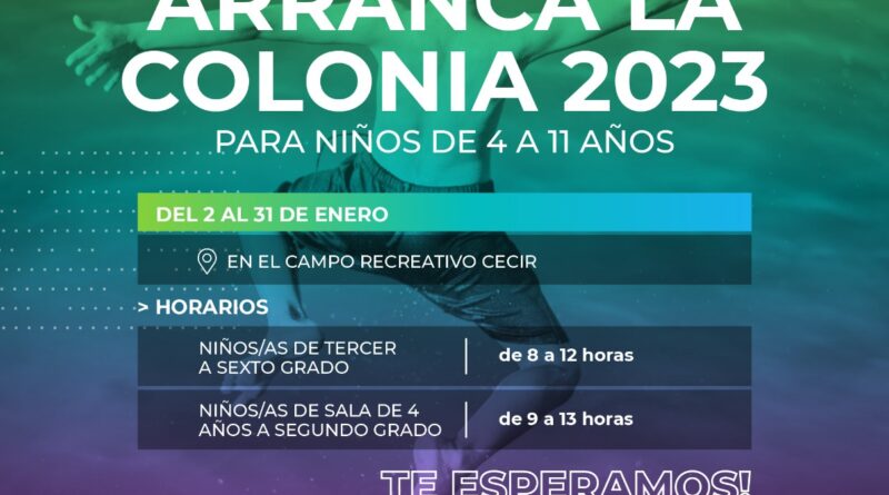 El próximo 2 de enero comenzará la actividad de la Colonia Municipal de Vacaciones para niñas/os de 4 (Sala hecha) a 11 años en el Campo Recreativo CECIR.