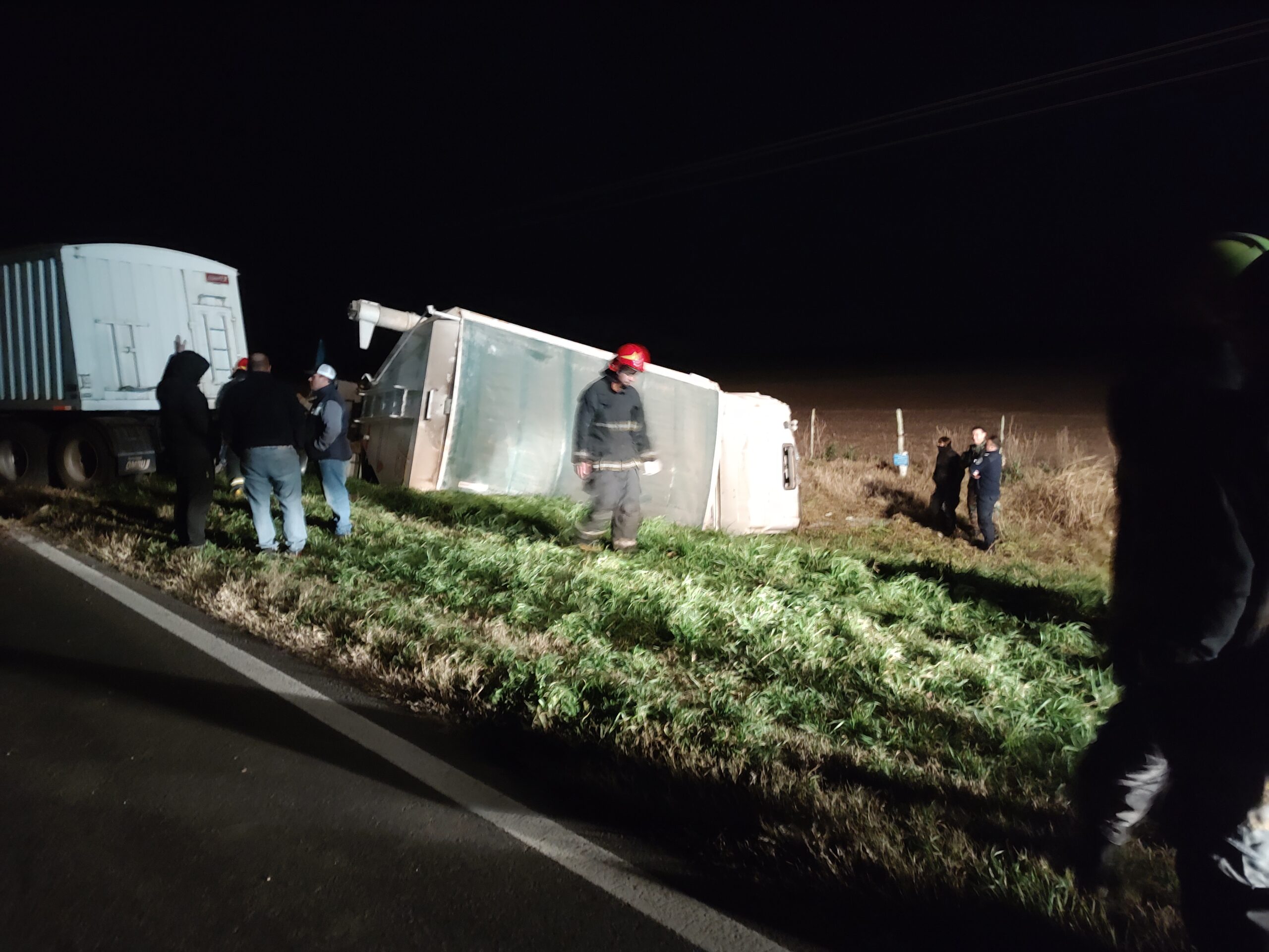 Fue protagonizado por dos camiones que habrían rozado sus carrocerías, provocando que uno de ellos -el que circulaba en sentido Pergamino/Rojas- despistara hacia la banquina contraria, volcando la cabina – El otro transporte logró detener su marcha unos metros más adelante sin que su conductor resultara herido –